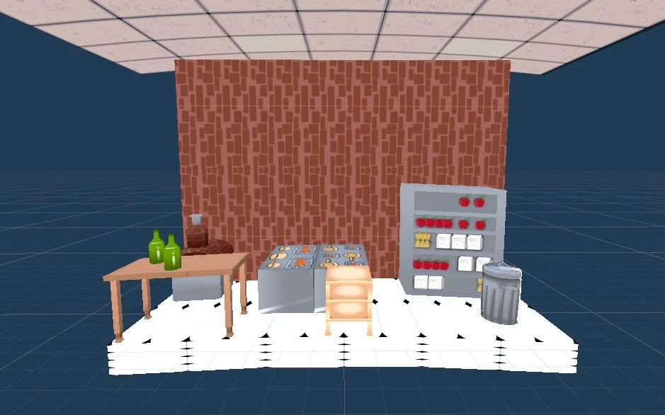 I repeated this process to create a number of environmental kitchen objects. To create the effect of an endless environment for the player to run through, these environmental assets were combined into over 30 kitchen prefabs that were procedurally repeated as the game progressed. This created the effect of a constantly changing, unique environment.