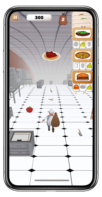 The game took the form of a classic endless runner where the player controls a chef running through a kitchen. As a twist, the player must pick up “ingredient” items along the level and combine them in order to create recipes that will give them speed boosts.